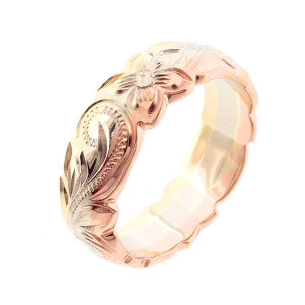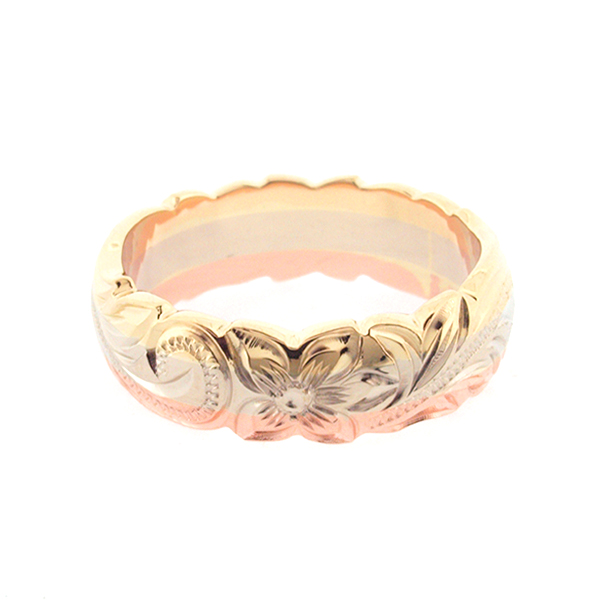そんな虹(ハワイ語でアヌエヌエ)を表現した、3色のカラーゴールドが美しいトラディショナルなハワイアンジュエリーリング(指輪)を日本でも発売することになりました。