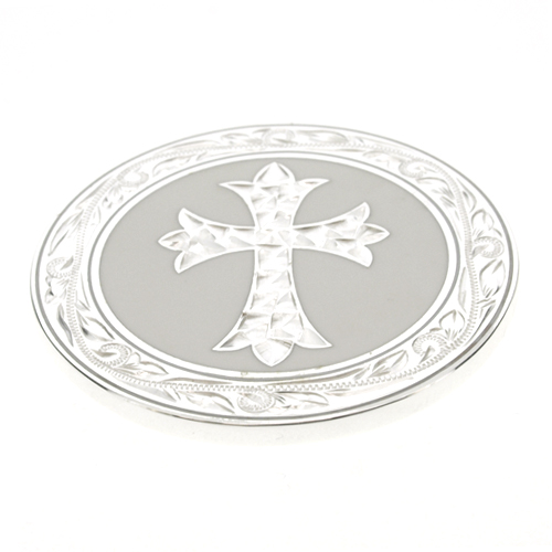 マイレの葉とクロスを組み合わせたマイレクロスのデザインを取り囲むようにオールドイングリッシュ柄を手彫りしています。