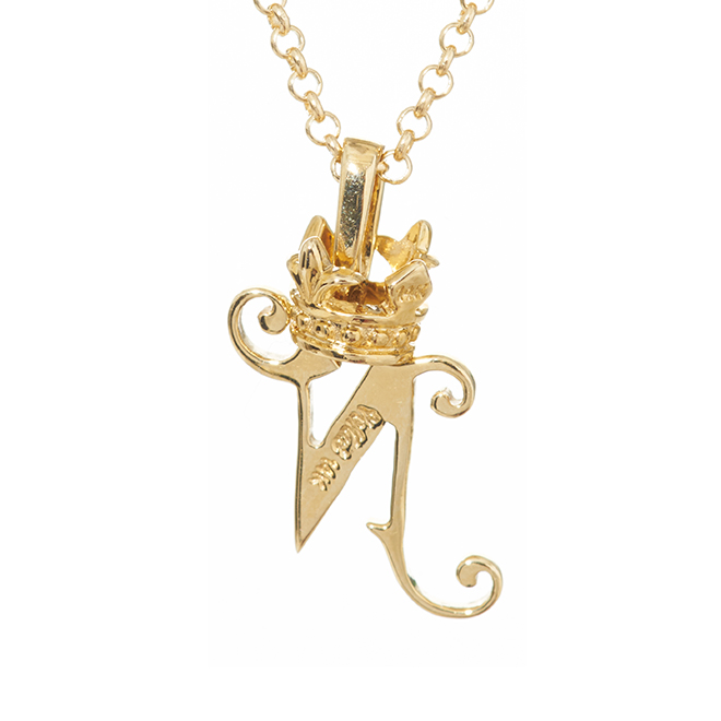 イニシャルペンダントにクラウン(王冠)のチャームがついてきます。