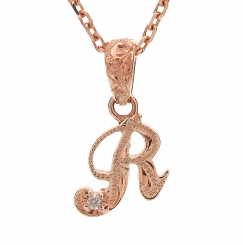 ハワイアンジュエリー/K14PG/ダイヤモンド イニシャル ペンダント「R」