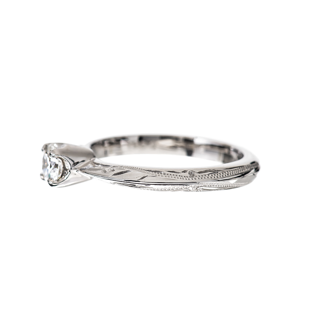 ソリテールのダイヤモンドが映える上品で柔らかなフォルムに、伸びやかな彫りが印象的なハワイアンジュエリーリング(指輪)です。