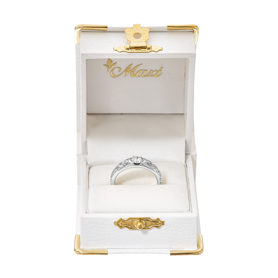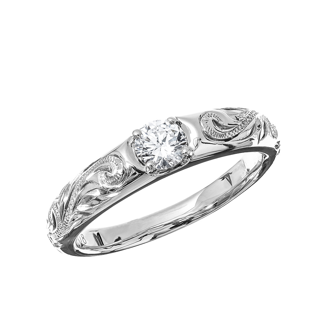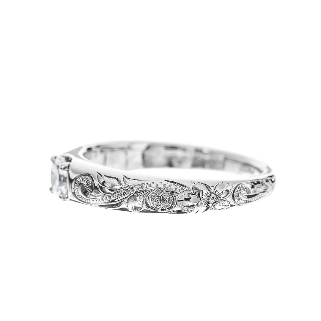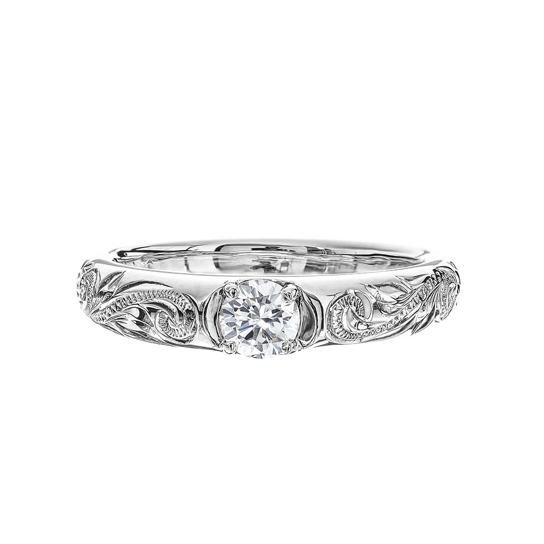 ハワイアン・エアルームジュエリーの代表格の彫り柄である、オールドイングリッシュを施した婚約指輪。