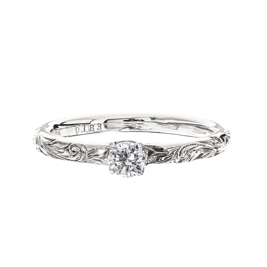 重ね着けにもおすすめなシンプルなエンゲージメントリング(婚約指輪)です。