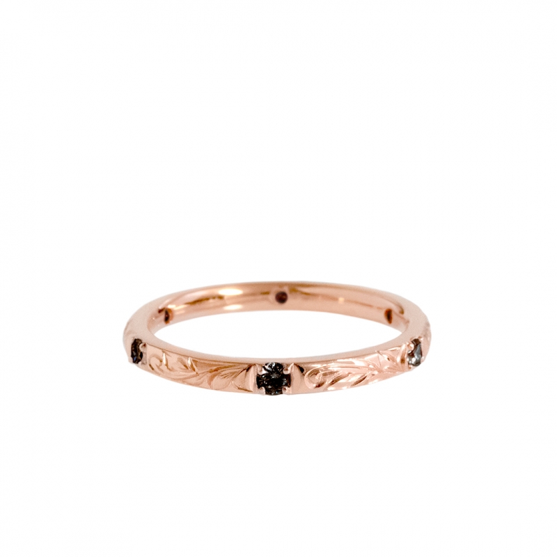 バレルデザインでカジュアルなドットのダイヤモンドを6石使用したエンゲージメントリング(婚約指輪)です。