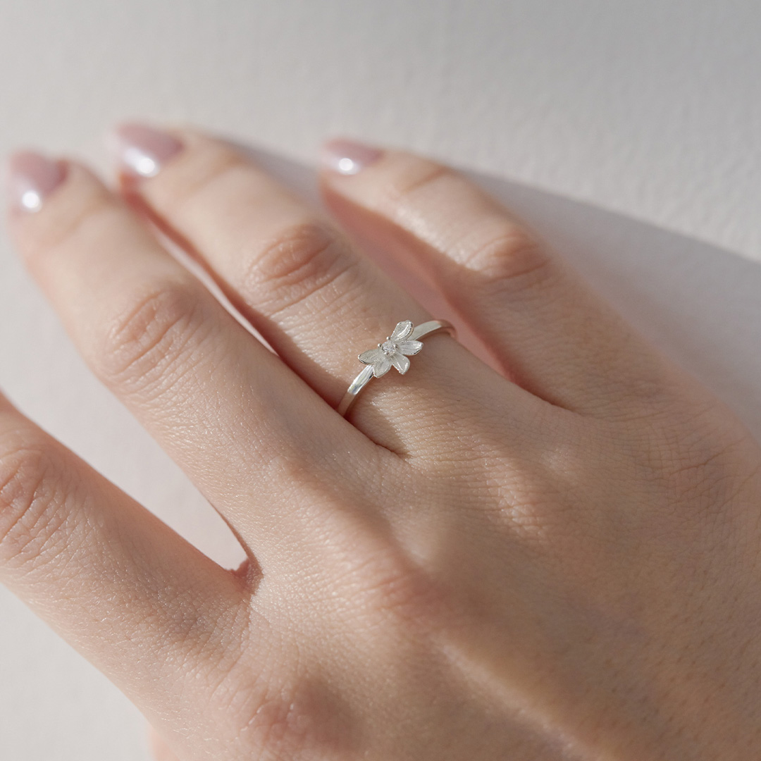 ハワイで見かける小さな可愛らしい花、ナウパカがモチーフのハワイアンジュエリーリング(指輪)。